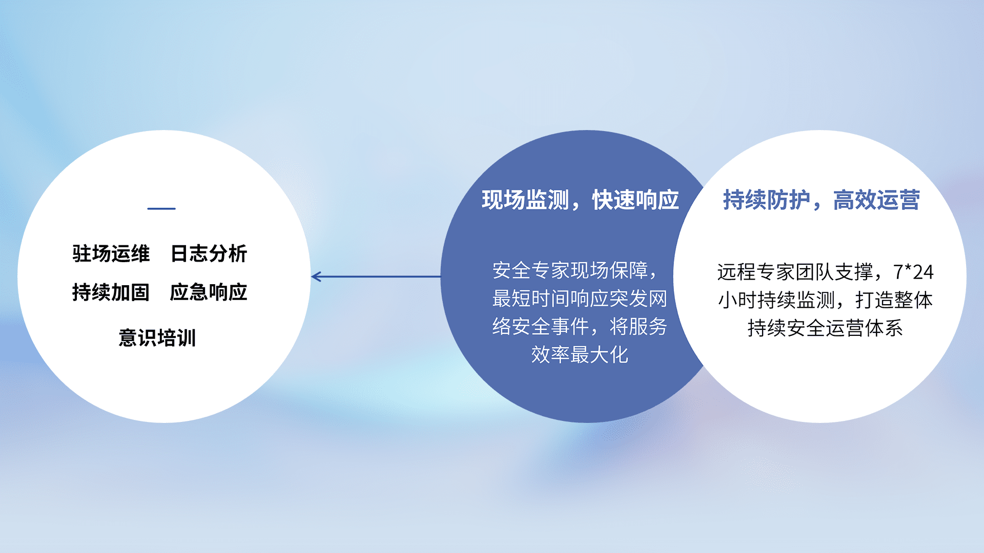 针对客户行业特性,,,,提供专属的一站式安全管理服务,,帮助客户全面感知网络空间威胁,,,,通过安全专家的线上、、、线下防护支持,,,,实现风险闭环,,,将安全保障常态化,,,为客户打造常态化安全运维运营服务。。
